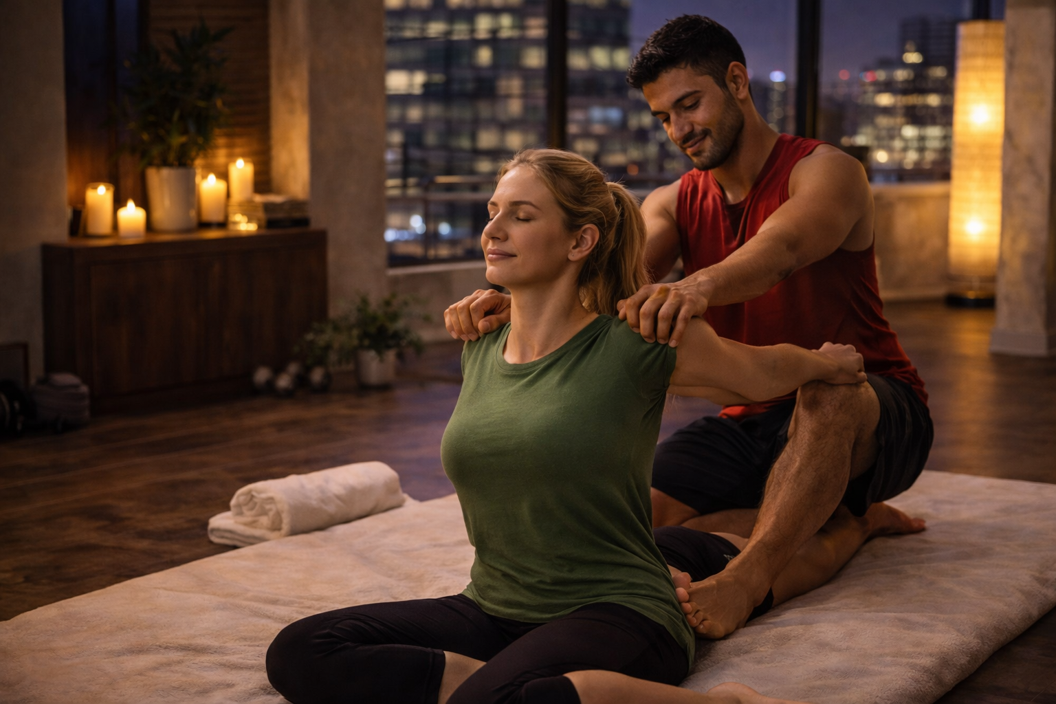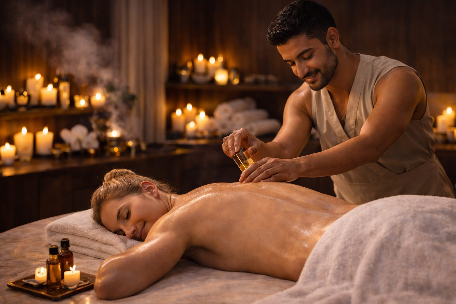 An exclusive luxury massage experience in a private setting with premium oils.